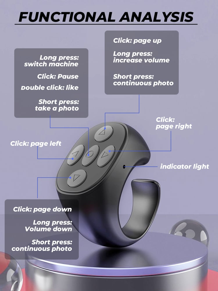 This little gadget is super convenient! I use it mostly to take selfies and control my phone from a distance, and it works perfectly. The Bluetooth connection is stable, and I love that I can easily take photos without having to hold my phone. It's also great for scrolling through pages when I'm relaxing.
